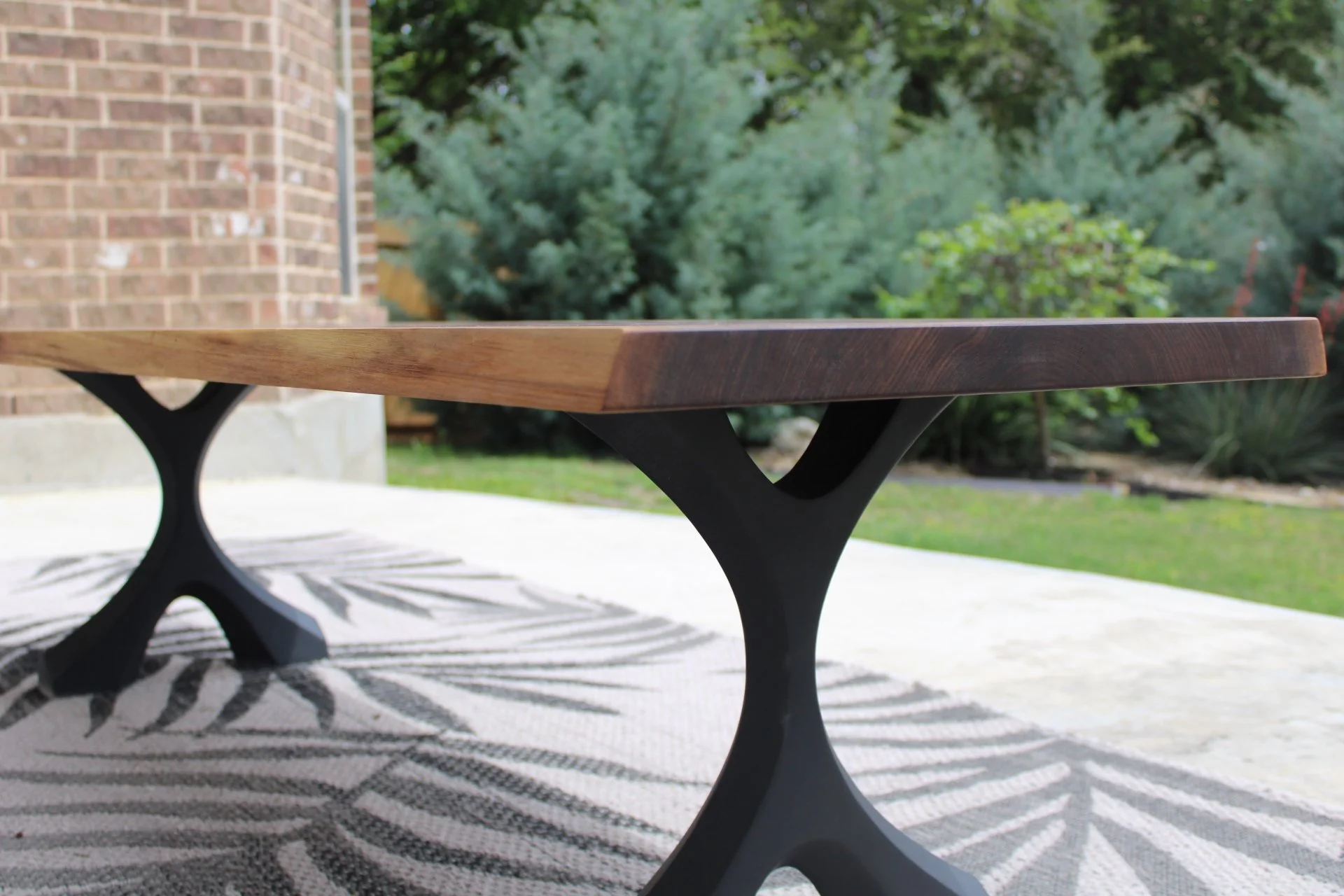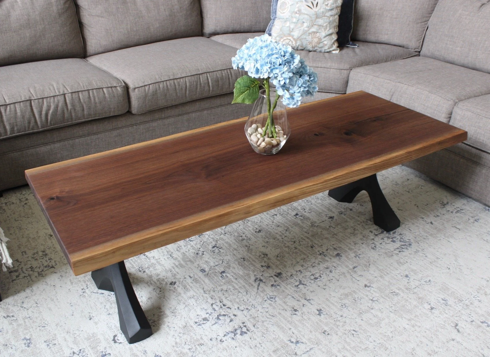 This solid walnut coffee table is built with recessed steel legs to give it a clean, floating look. It’s finished with Rubio Monocoat to protect the wood while bringing out the natural grain and depth.